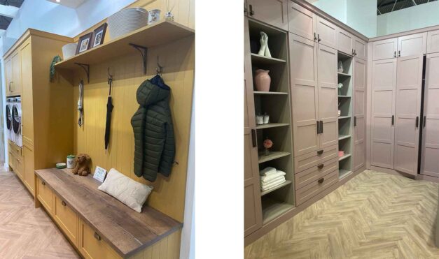 Throughout the exhibition, many stands showcased colourful cabinetry and woodwork which definitely caught our attention, especially this mustard yellow utility cabinet and dusky pink wardrobe space. It was interesting to see such a bold colour i
